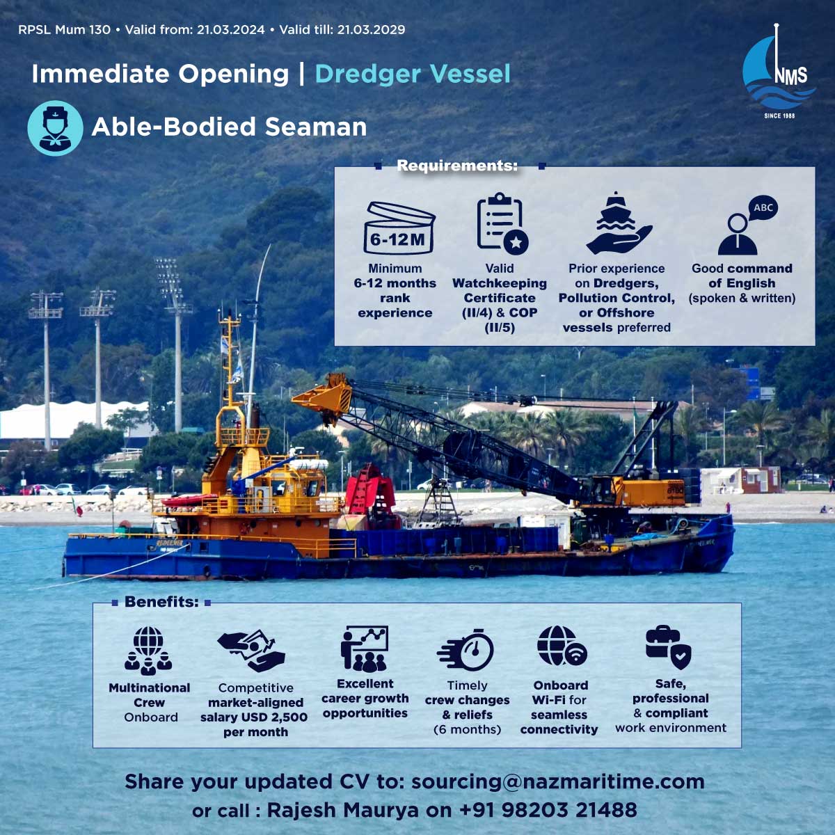 Chief Officer – Immediate Joining, Fitter, Able Seaman