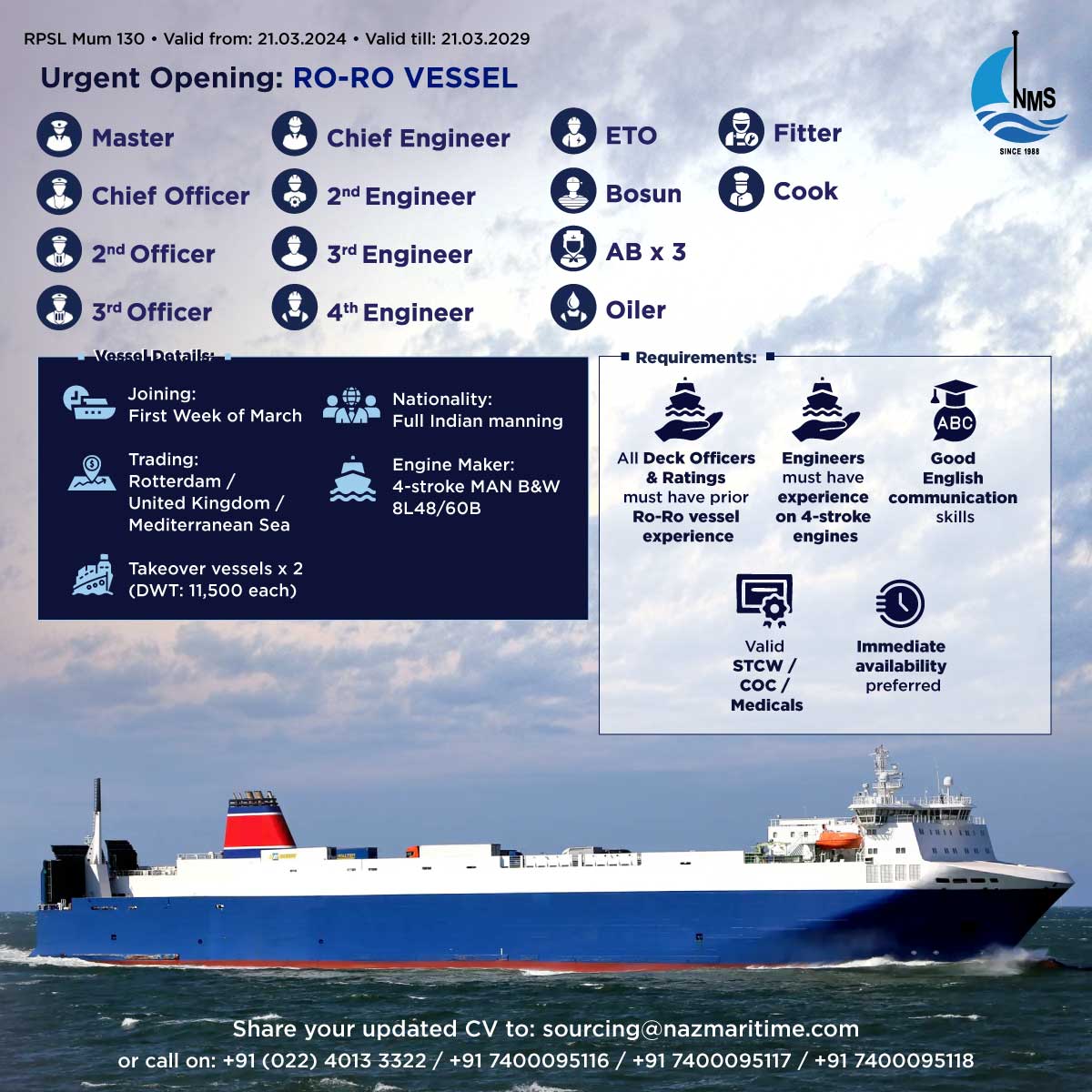 Urgent Opening: RO-RO Vessel