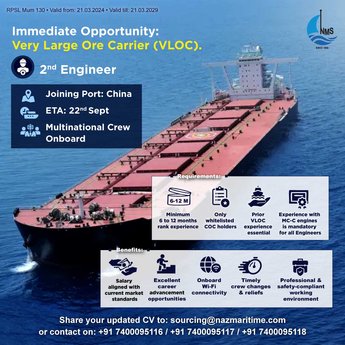 Immediate Joining: for the takeover of a Very Large Ore Carrier (VLOC)