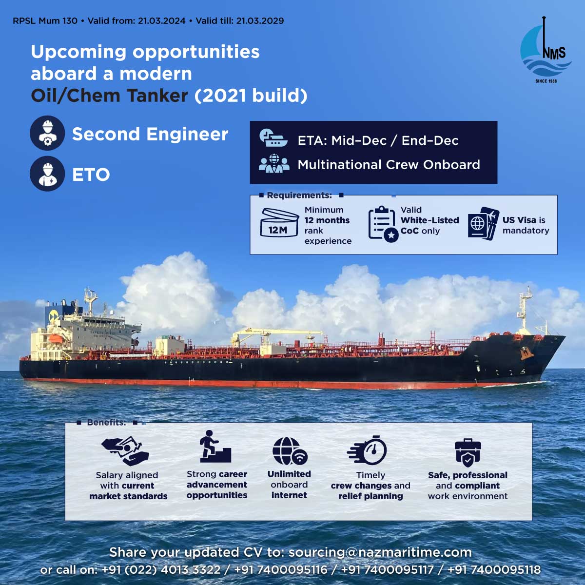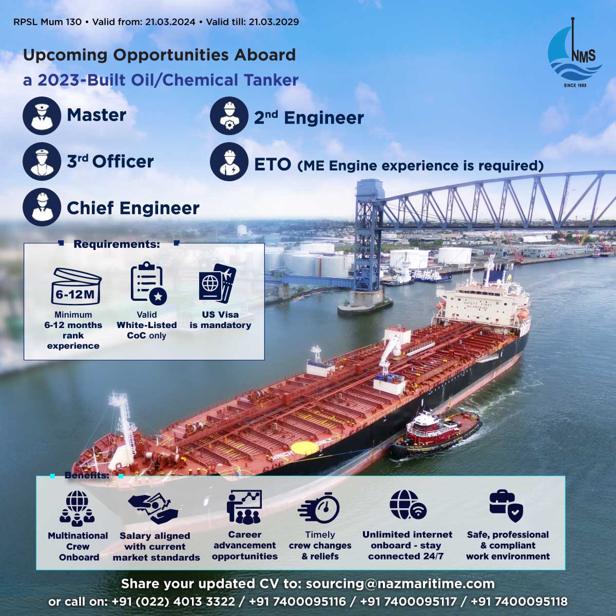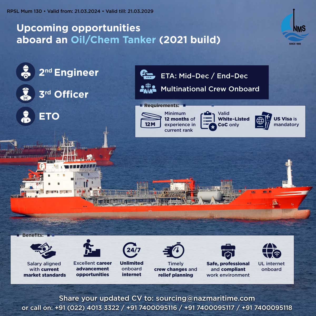 Upcoming Opportunities aboard a modern Oil/Chemical Tanker (2021 Build)