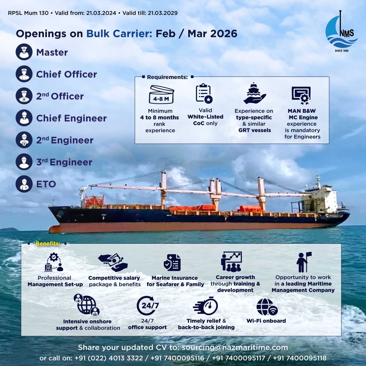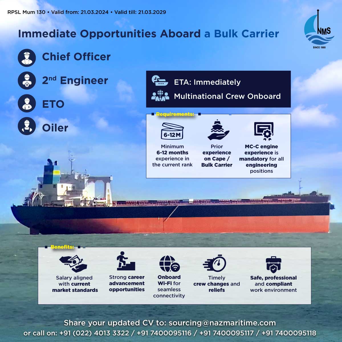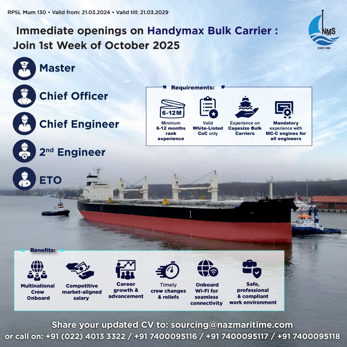 Openings for Handymax Bulk - Joining Mid DEc 2024