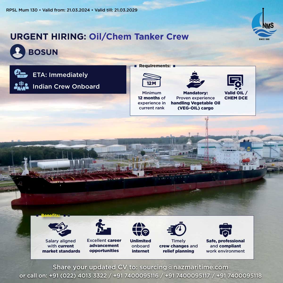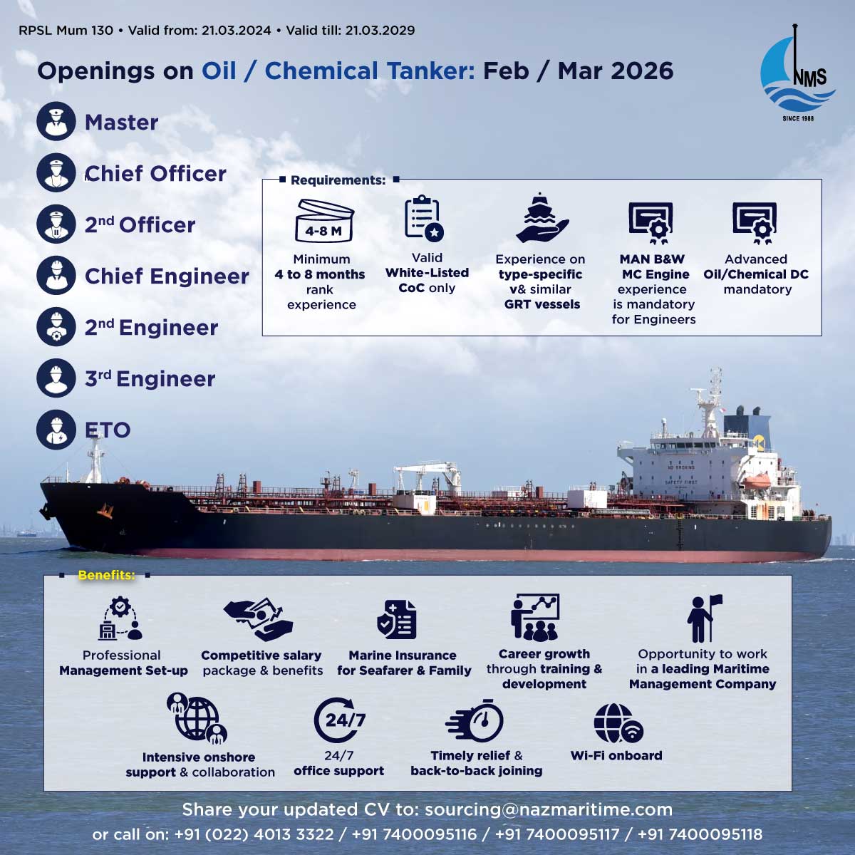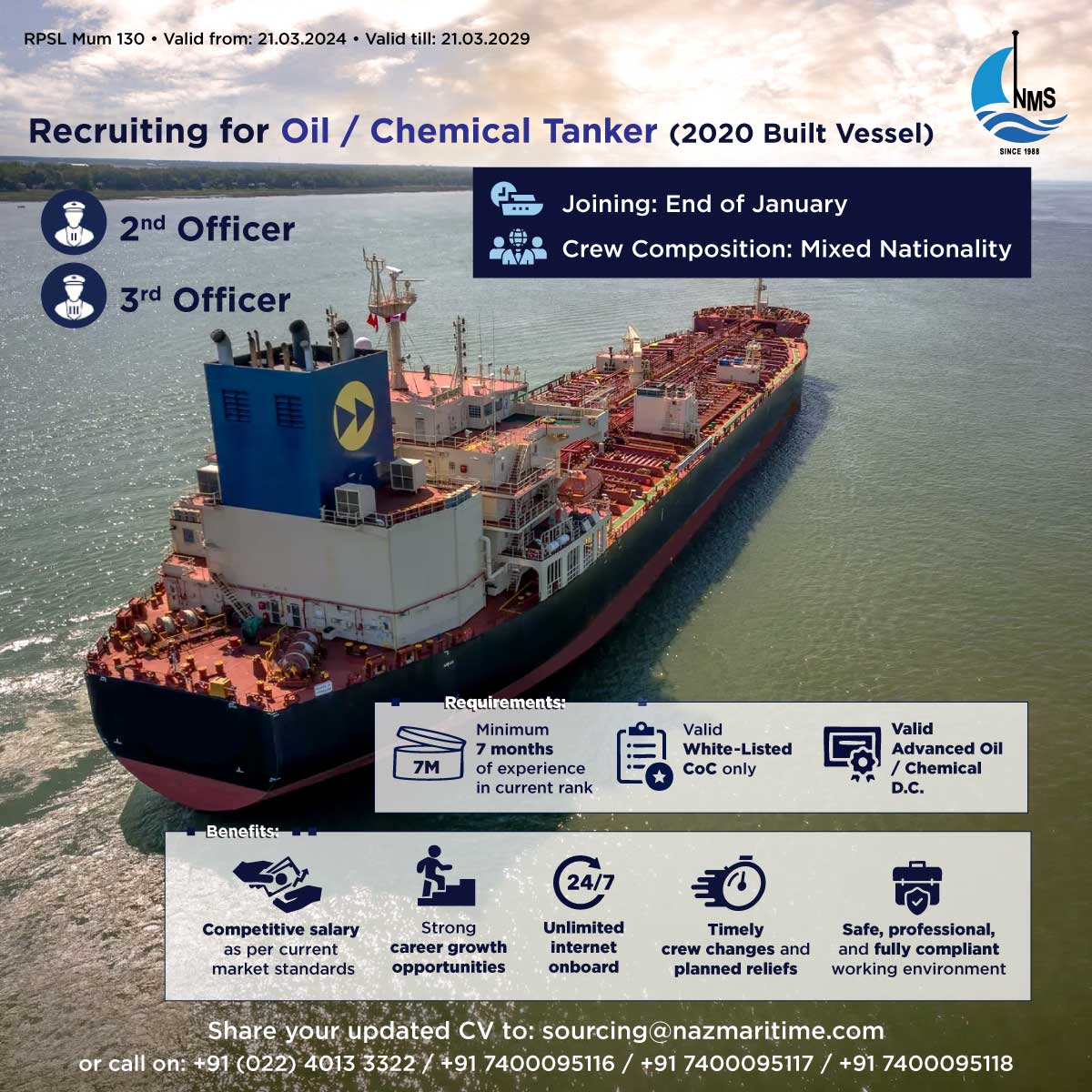Upcoming Opportunities aboard on an Oil/Chemical Tanker (2021)