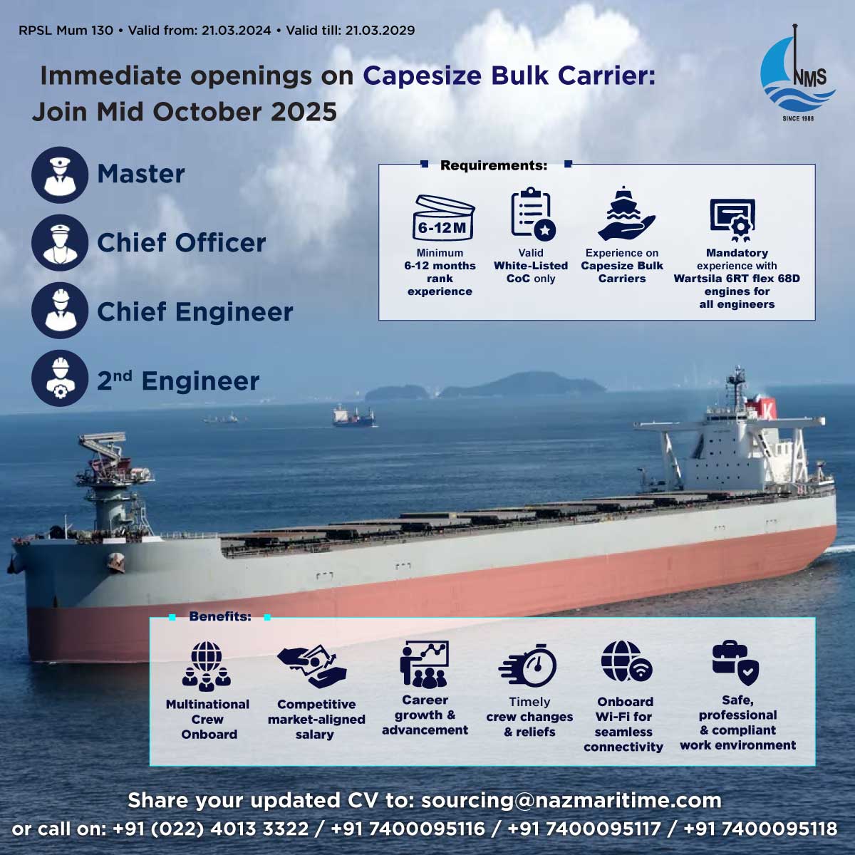 Immediate Openings on capsize Bulk Carrier: Mid Oct 2025